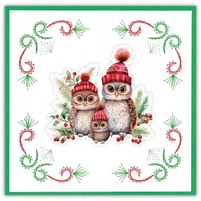 Met borduurwerk op gekleurd karton geef je een andere dimensie aan je zelfgemaakte kaarten. Elke set bestaat uit vier basiskaarten, vier voorgeprikte patroonkaarten, vier 3D-afbeeldingen en 4 kleuren Stitch and Do borduurgaren. -