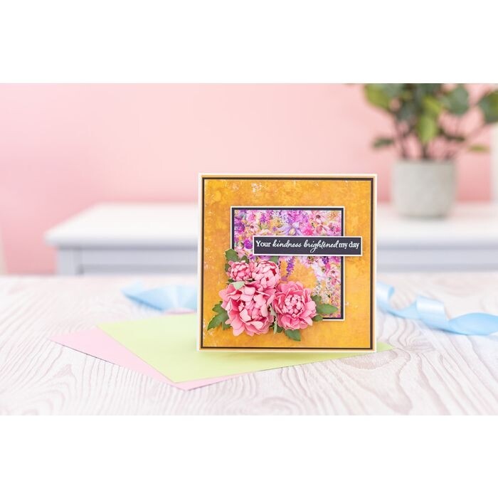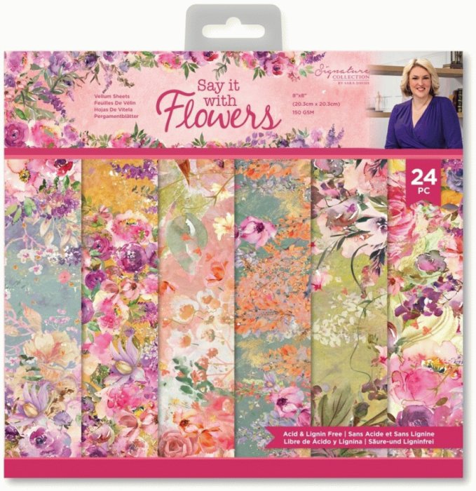 Sara Signature - Say It With Flowers - Vellum Pad 20x20 cmDeze Vellumpad bevat 24 vellen 150 gsm vellum papier6 ontwerpen a 4 vel gevuld met prachtig geïllustreerde bloemen in volle bloeiIdeaal om theelichtjes en schudkaarten te makenKleurrijk, geurig en vol leven, elke bloem heeft een geheel eigen betekenis en persoonlijkheid, van zoete, zorgzame pioenrozen en trouwe anjers tot de klassieke romantische roos. Wat de gelegenheid ook is, toon je liefde, zorgzaamheid en vreugde door middel van je creaties met de Sara Signature Say it With Flowers-collectie.En groene vingers zijn niet nodig, want met deze bloeiende briljante collectie maak je de mooiste bloemen met bloemblaadjes van zacht crêpepapier. Perfect om op je kaarten te plaatsen of om te veranderen in boeketten, ruiker, slingers en tafeldecoraties voor bruiloften en speciale gelegenheden!Een volledige collectie met snijmallen, stempels, tools om bloemen te vormen en frisse en levendige paperpads nodigt u uit om de mooiste tuinbloemen in uw kaarten, cadeaus, woondecoraties en meer te verwerken.Laat je bloemen schitteren met de 8”x8” Vellum Pad! Dit zachte en licht doorschijnende materiaal is ideaal om theelichtjes, schudkaarten en delicate bloemblaadjes te maken. Dit pakket bevat 6 prachtige en weelderige designs met prachtig geïllustreerde bloemen in volle bloei, van tuimelende wilde bloemen tot rijke en weelderige rozen en pioenrozen. Warm zonnegeel en stoffig roze worden gecombineerd met fris bladgroen, perzik en fuchsia om een palet te creëren dat straalt van frisse, natuurlijke schoonheid.Met vier van elk designvel zijn er in totaal 24 perkamentvellen - genoeg om wat extra sfeer te geven aan al je kaarten, knutselwerkjes en cadeaus!Of je nu een enkele, slanke steel of een totaal statement-boeket maakt, blader eens door de Sara Signature Say it With Flowers-collectie om de mooiste bloemen te plukken voor al je creaties en speciale gelegenheden! -