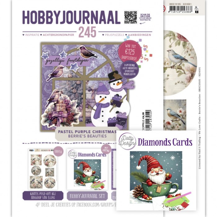 Hobbyjournaal Magazine, nieuwe stijl. Met veel voorbeeldkaarten, borduur- en hobbydotspatronen. Centraal staan de collecties Mystic Winter van Berrie's Beauties en We Are Men van Amy Design. -