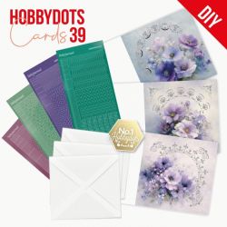Deze handige Hobbydots-set bevat alle materialen voor 3 vierkante kaarten met elk een Hobbydotspatroon en een 3D-afbeelding. De set bevat 3 kleuren kaartkarton, vier Hobbydots-stickervellen en drie witte oplegkaarten met het voorbedrukte patroon. Door het voorbedrukte patroon zijn de kaarten te maken zonder lichtbak. De afbeeldingen van deze set zijn getekend door Yvonne Creations en zijn afkomstig uit de collectie Very Purple. -
