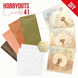 Uniek aan deze complete Hobbydots-set is dat het patroon is gedrukt op gekleurd karton. De set bevat voldoende materiaal voor 4 complete kaarten: drie pushout 3D-afbeeldingen, 1 scenery/tekst sheet, drie Hobbydots-stickervellen, vier vellen Card Deco karton, vier met patroon bedrukte oplegkaarten en vier inlegvellen voor de afwerking. Door de voorbedrukte patronen is de set te gebruiken zonder lichtbak. -