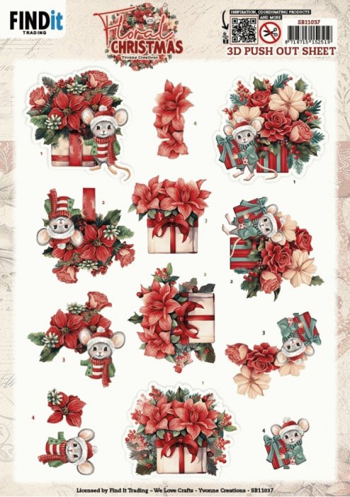 3D Pushout Sheet - Yvonne Ceations - Floral Christmas- Floral Presents
