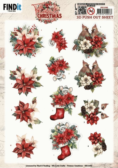 3D Pushout Sheet - Yvonne Ceations - Floral Christmas- Floral Poinsettia