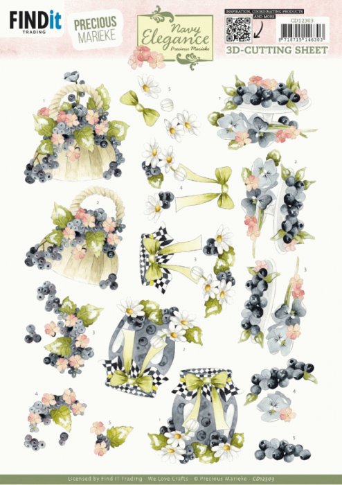 3D Cutting Sheet - Precious Marieke- Navy Elegance - Blueberries