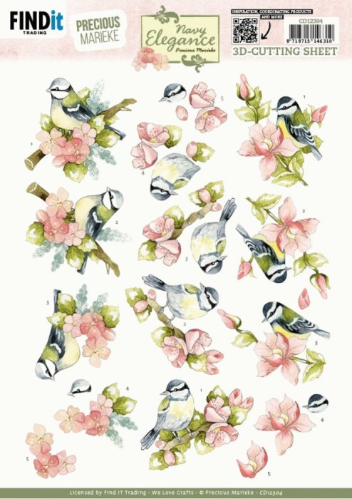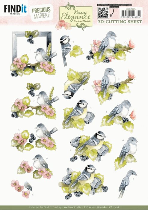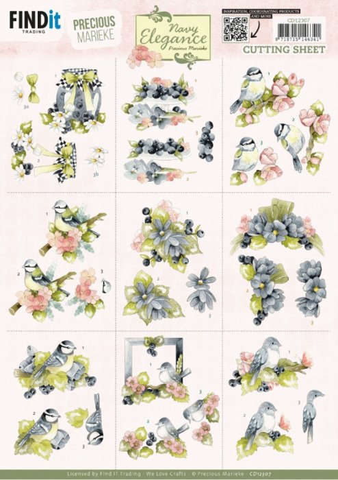 3D Cutting Sheet - Precious Marieke- Navy Elegance - Blue Birds