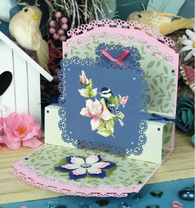 Knipvel met drie 3D-afbeeldingen in het thema van de collectie Blossom Blush van Precious Marieke.