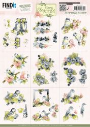 3D Cutting Sheet - Precious Marieke- Navy Elegance - Flower Bird