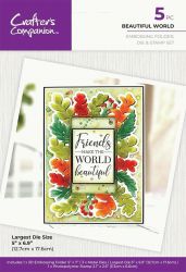 Gemini - 3D Embossingfolder/Snijmal/Stempel Frames Set - Beautiful WorldDeze verpakking bevat een 5"x7"3D embossingfolder, drie snijmallen en een clearstamp.Emboss en stans een delicaat frame design uit met weelderige 3D-decoraties.Afmeting van de grootste snijmal is 5″x6.9″ (12.7x14.5 cm).Stans, emboss en kleur dimensionale kaarten voor feesten het hele jaar door met de Embossed Frames-collectie van Crafter's Companion. Elke set bevat dus alles wat je nodig hebt om daarmee een delicaat en mooi gevormd frame uit te snijden met 3D-decoratie en een gestempelde boodschap in het midden.Alles is zo ontworpen om perfect met elkaar samen te werken. Je kunt daarnaast mixen en matchen in de collectie, om daarmee frameontwerpen en gestempelde berichten te combineren. Dus je kan perfect op maat gemaakte kaarten voor elke gelegenheid creëren, klaar om naar je dierbaren te sturen.Bosgebladerte. De 3D Embossingfolder Frames Set - Beautiful World bevat een 3D-embossingfolder om een 3D frame van varens, bladeren en bessen te creëren. Je ontvangt ook drie metalen snijmallen om het delicaat gevormde frame tot in de kleinste details uit te stansen. Plus een stempel met de boodschap ‘Friends make the world beautiful’.Kaartenmaakset. Elke set bevat een embossingfoldervan 5"x7" met bijbehorende stansen en een sentimentstempel. De elementen zijn ontworpen en op maat gemaakt om dus samen te gebruiken om daarmee complete kaarten te creëren met weelderige decoratie en een doordachte boodschap. Je kunt elk item ook afzonderlijk gebruiken om lijsten, gestempelde middenstukken en meer te maken.Seizoenskleuren. Gebruik onze TriColour Aqua markers en Duet-stempelkussens om daarmee sfeervolle kleuren toe te voegen en uw 3D ontwerp van de pagina te laten springen. Pas uw kleuren aan zodat deze bij het seizoen of de gebeurtenis past. Dus van de warme herfst en frisse winter tot de frisse lente en levendige zomer!Gemakkelijk en leuk. Om binnen enkele seconden verbazingwekkend delicaat gestanste en 3D ontwerpen te maken is alles wat je nodig hebt is een Gemini stans-en embossingmachin! Creëer eenvoudig uw platencombinatie met behulp van de handige Sandwichgids in de handleiding en voer deze door uw stansmachine. Voor het beste resultaat stanst u eerst de mal en gaat het design daarna embossen.Aangepaste combinaties. Elke set in de Frame-, Edge- en Emboss-collectie is op maat gemaakt om perfect samen te werken. U kunt dus de 3D- en gestanste ontwerpen uit het volledige assortiment mixen en matchen. Neem dus eens een kijkje in onze collectie om uw favoriete combinatie te vinden.